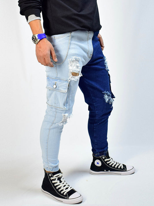 Pantalón Bicolor/ Dos tonos en Jean - Azul Claro Oscuro