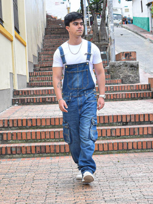 Overol Cargo Clásico en Jean - Azul Medio