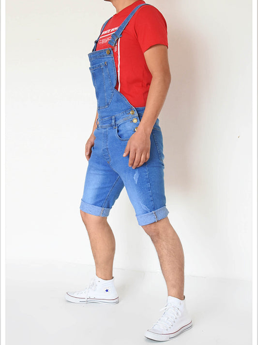 Overol licrado Corto Clasico en Jean - Azul Medio