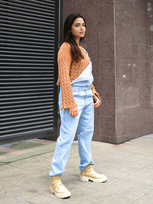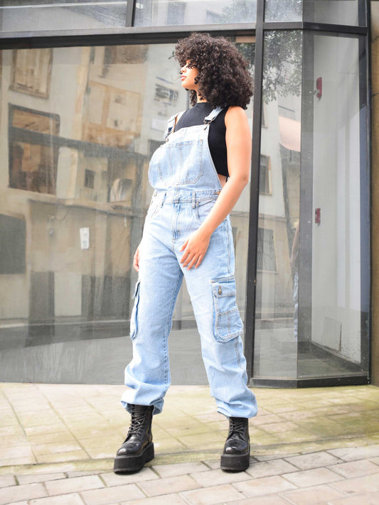 Overol Cargo Oversize Mujer en Jean - Azul Claro