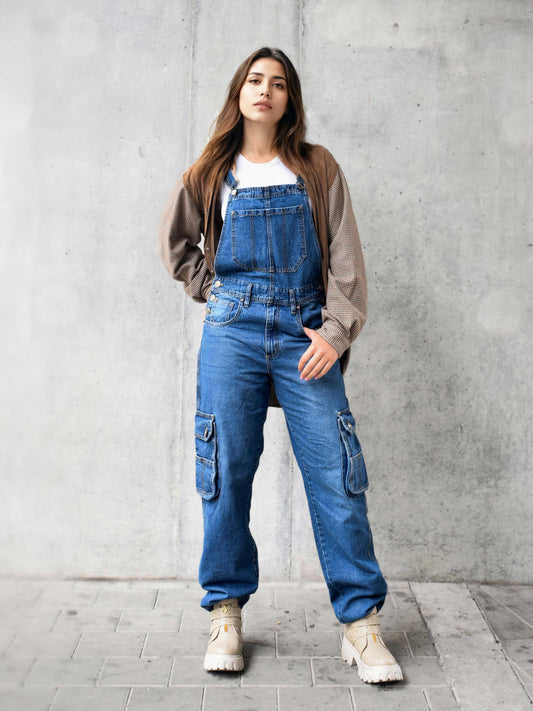 Overol Cargo Oversize Mujer en Jean - Azul Medio