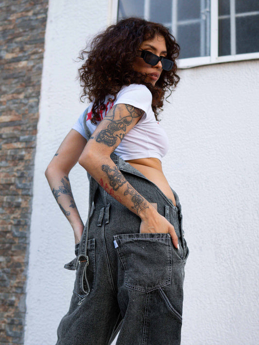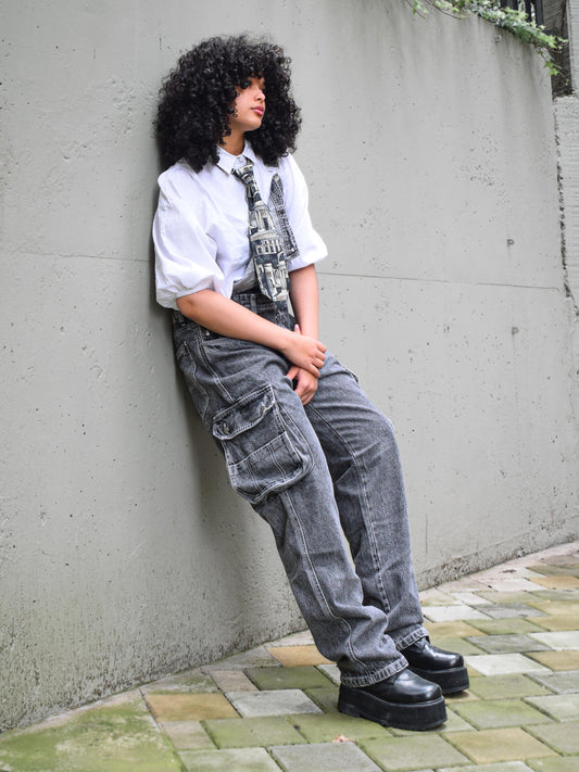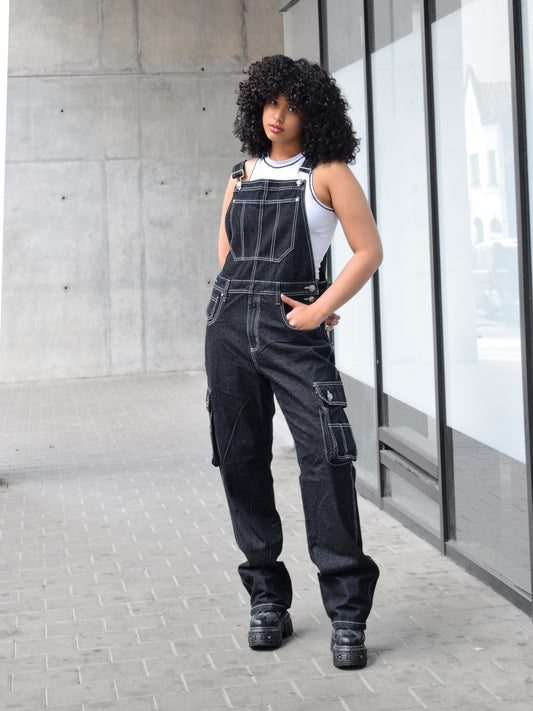 Overol Cargo Oversize Mujer en Jean - Negro Pimienta