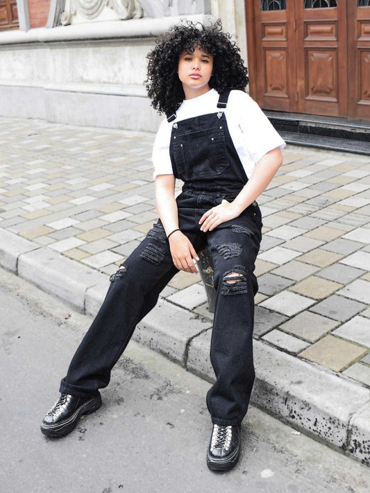 Overol Rígido Con Rotos Mujer en Jean - Negro