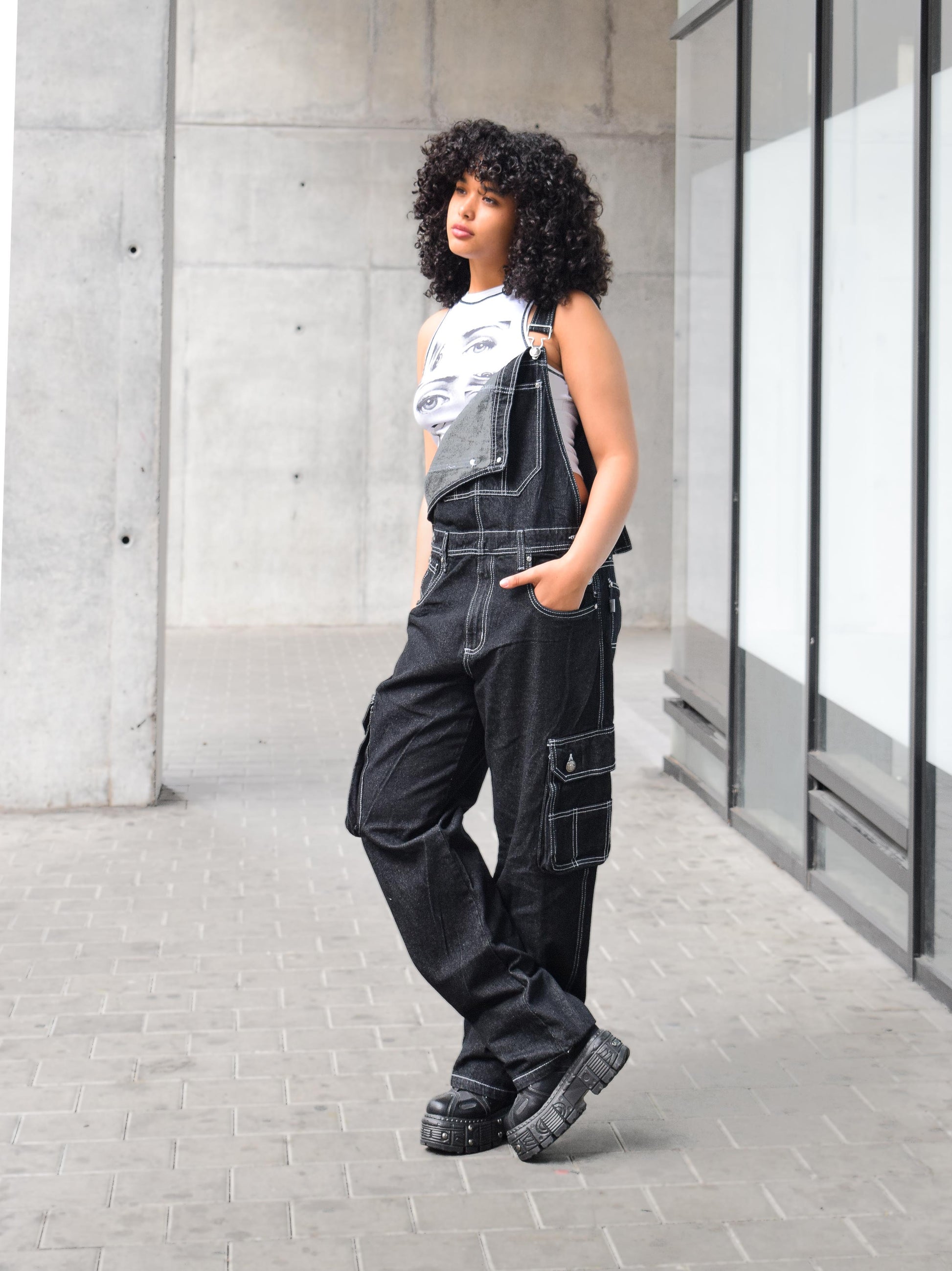 Overol Cargo Oversize Mujer en Jean - Negro Pimienta