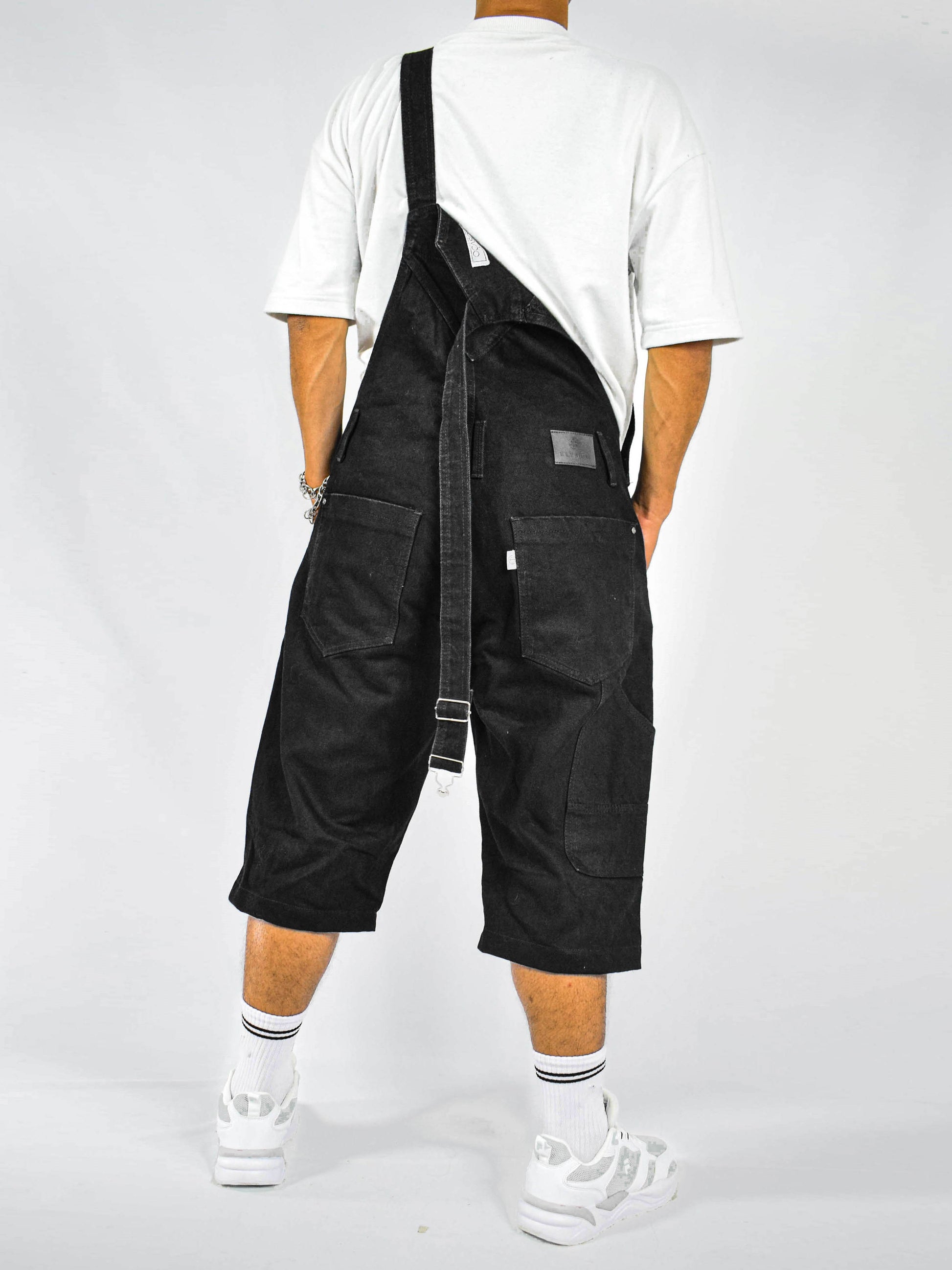 Overol Corto Rigido Con Rotos para Hombre en Jean Rigido Bota Recta - Negro. Confeccionado en tela de jean rígida para mayor resistencia. Presenta detalles de rotos y desgastes que aportan un toque de estilo. Cuenta con un bolsillo clásico en el peto, tres bolsillos funcionales, amplios bolsillos laterales y tirantas gruesas ajustables en extensión. La espalda larga y el diseño oversize lo hacen ideal para estilos clásicos y tradicionales.
