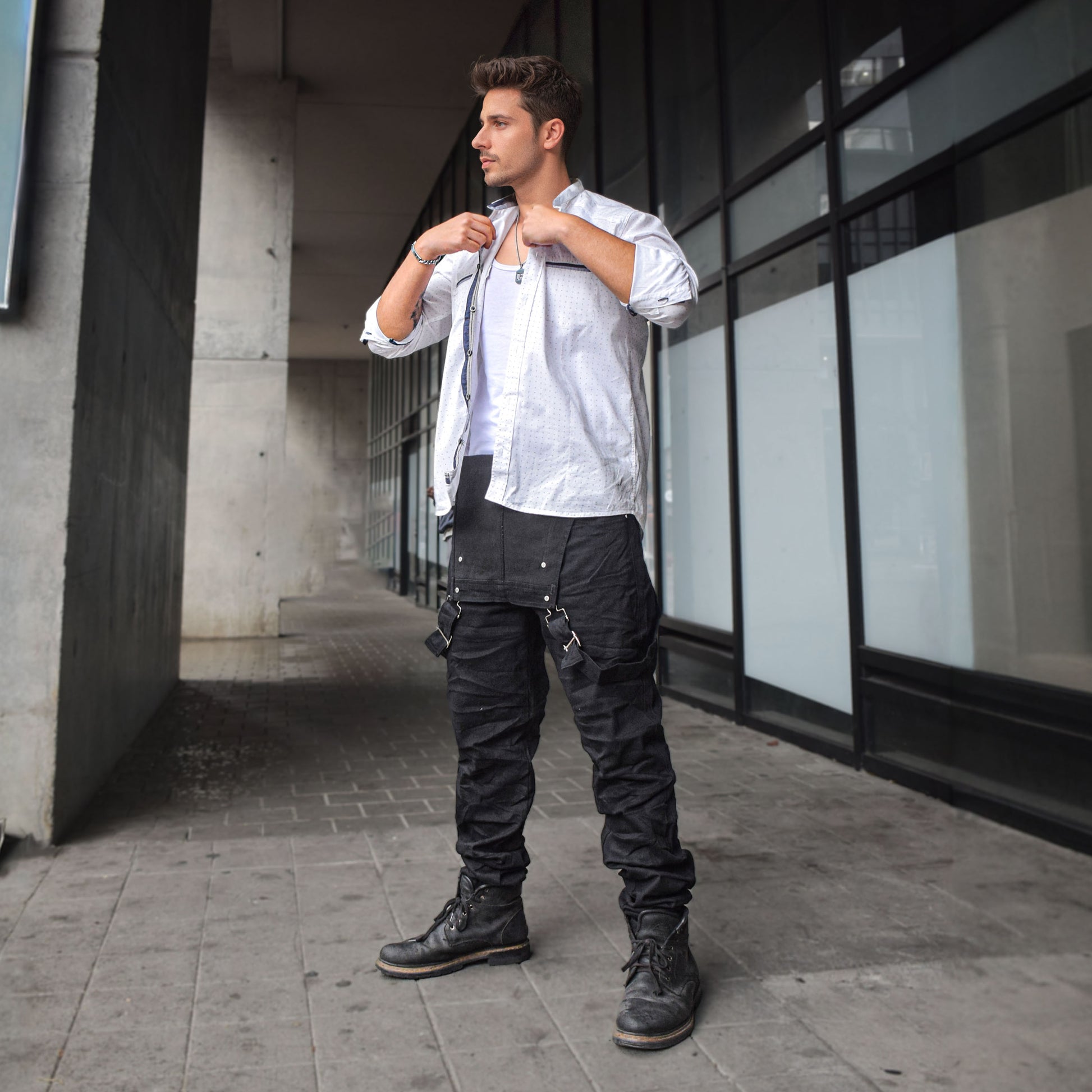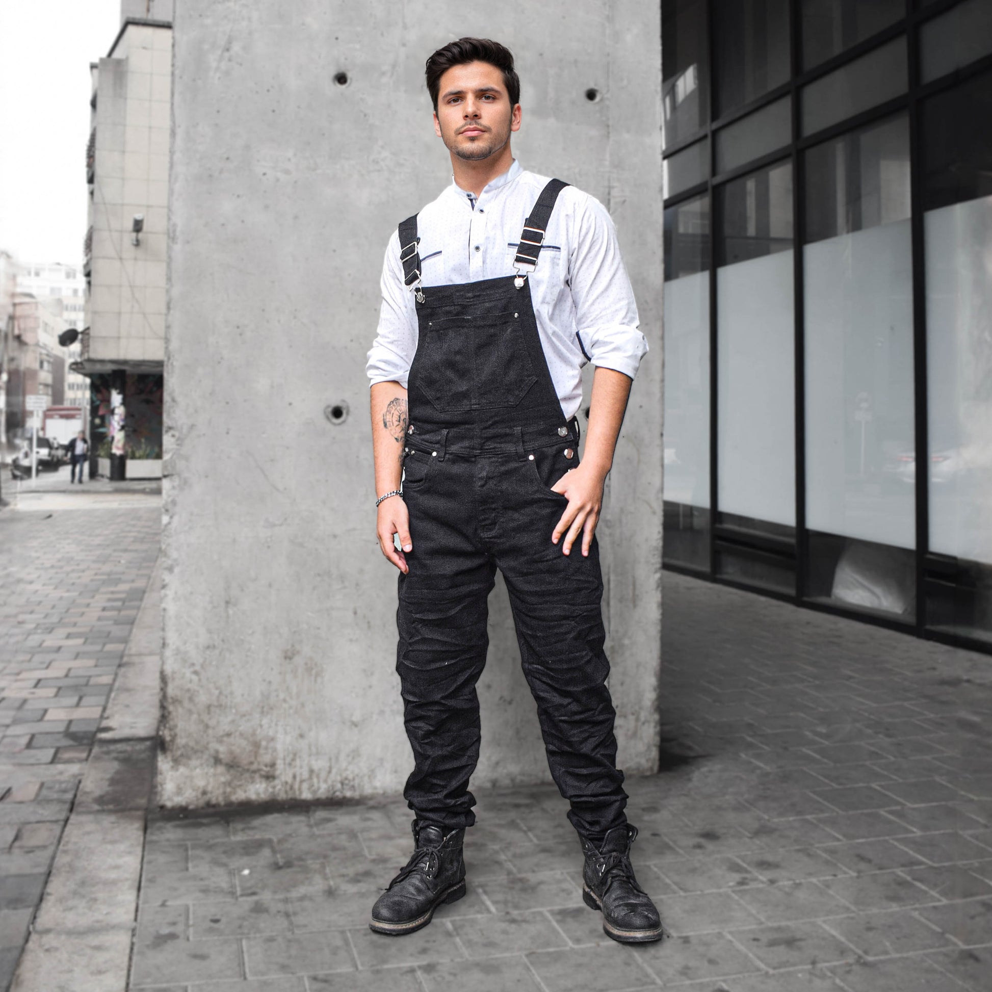 Overol o braga en jean con corte ajustado y diseño moderno y estilizado. Confeccionado en tela licrada (stretch), ofrece máxima comodidad y movilidad. Presenta un bolsillo clásico funcional en el peto. Las tirantas gruesas son calibrables en extensión, espalda alta, cuenta con tres botones de ajuste lateral y cremallera en el frente. Es una prenda versátil para estilos clásicos, retro o juveniles