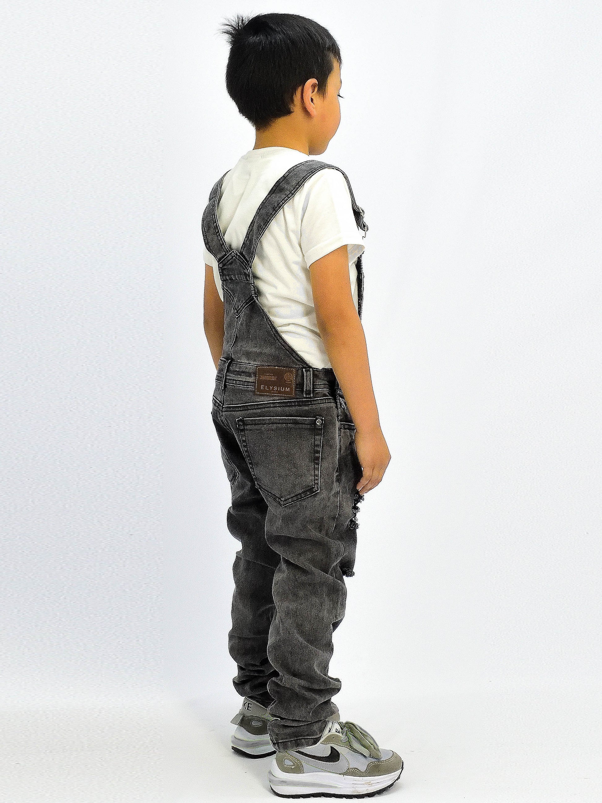 Overol Niño Licrado para Infantil en Jean Licrado Bota Ajustada - Gris. Corte ajustado, confeccionado en tela de jean licrada para mayor comodidad y flexibilidad. Cuenta con un bolsillo funcional en el peto y amplios bolsillos laterales de corte recto. Las tirantas ajustables permiten calibrar el largo, proporcionando un ajuste personalizado y práctico para el día a día.