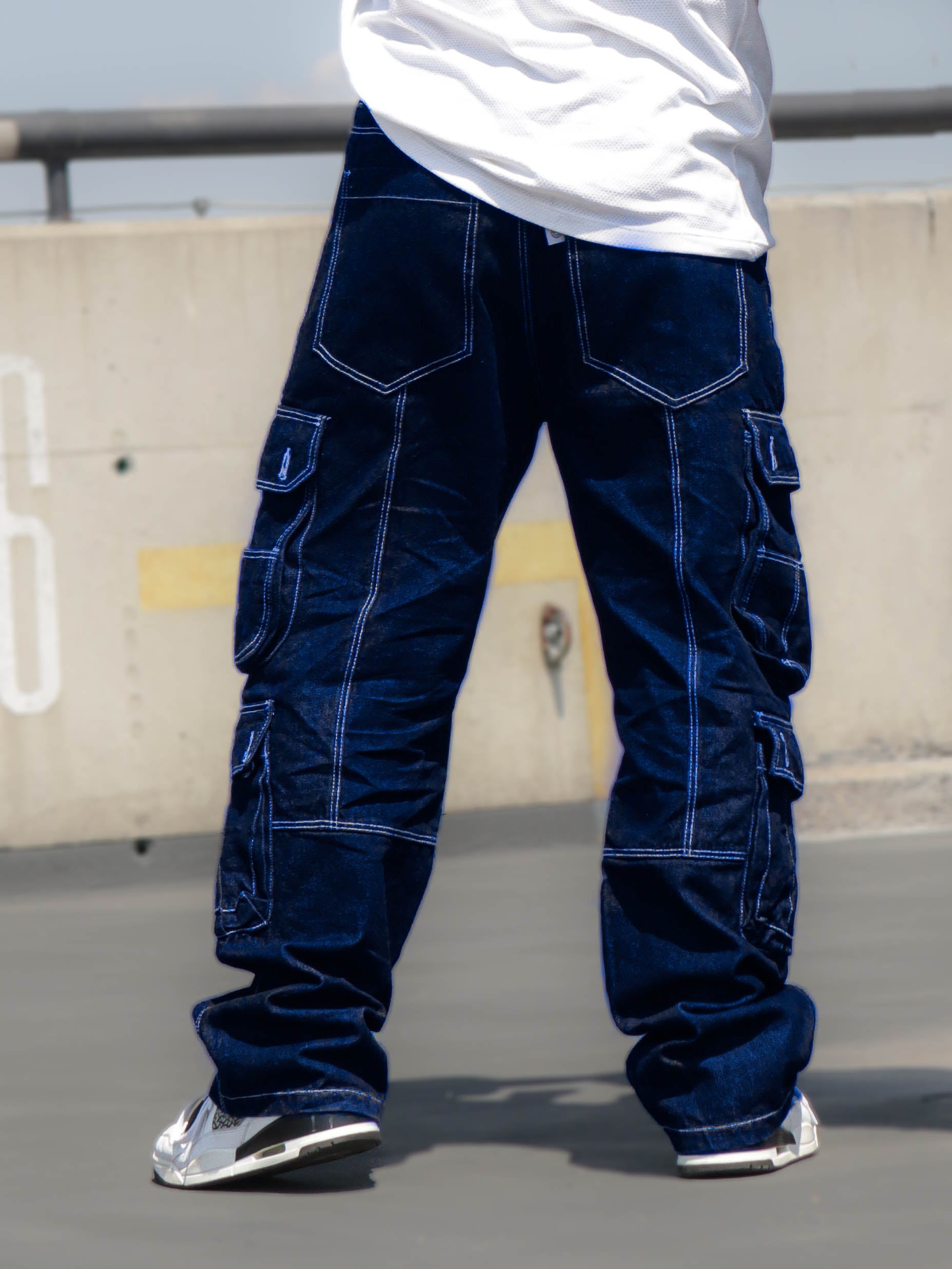 Pantalón Cargo Oversize en Jean - Azul Oscuro